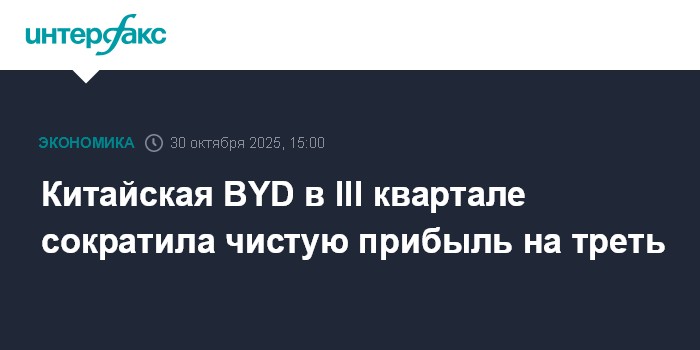 Москва. 30 октября. INTERFAX.RU - BYD Co., ведущий китайский производитель автомобилей на новых источниках энергии (NEV), снизила чистую прибыль и выручку в третьем квартале 2025 года, при этом оба показателя не оправдали прогнозы рынка.