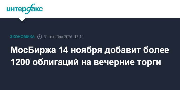МосБиржа 14 ноября добавит более 1200 облигаций на вечерние торги