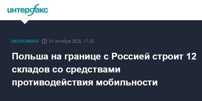 Москва. 31 октября. INTERFAX.RU - Вдоль всей границы Польши с Россией и Белоруссией формируются инженерные парки с противотанковыми "ежами" и другими средствами контрмобильности, заявил в соцсетях Генштаб Войска Польского.