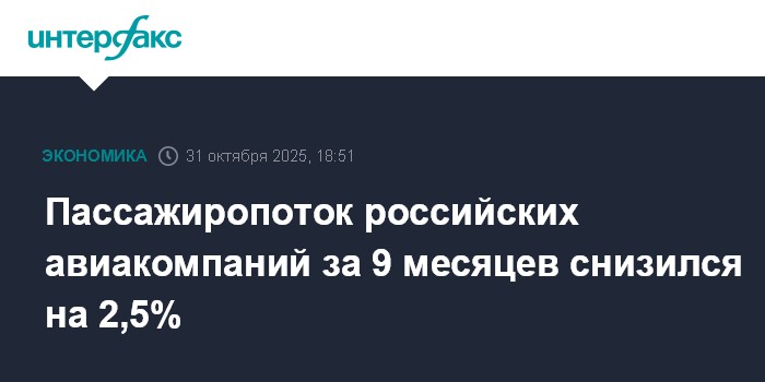 Москва. 31 октября. INTERFAX.RU - Пассажиропоток российских авиакомпаний в январе-сентябре 2025 года составил около 84 млн человек, сообщила пресс-служба Росавиации, не уточняя динамику в сравнении с 2024 годом.