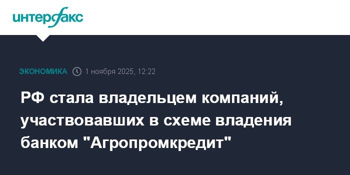 РФ стала владельцем компаний, участвовавших в схеме владения банком "Агропромкредит"