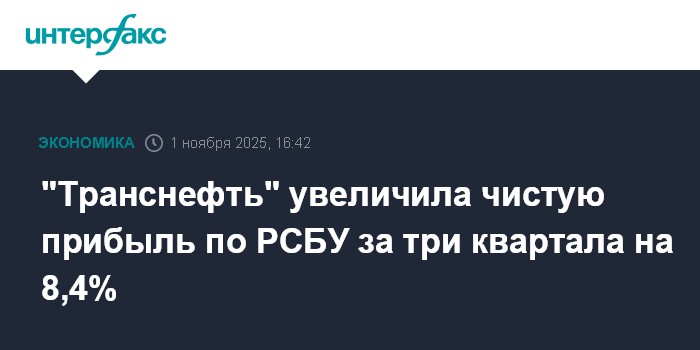 Москва. 1 ноября. INTERFAX.RU - Чистая прибыль "Транснефти" по РСБУ за 9 месяцев 2025 года составила 105,18 млрд рублей против 96,99 млрд рублей годом ранее (на 8,4% больше), сообщила компания.