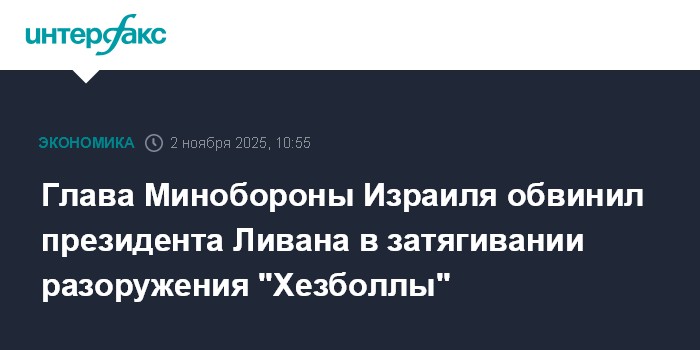 Москва. 2 ноября. INTERFAX.RU - Министр обороны Израиля Исраэль Кац обвинил руководство Ливана в затягивании процесса разоружения "Хезболлы", сообщает Times of Israel.