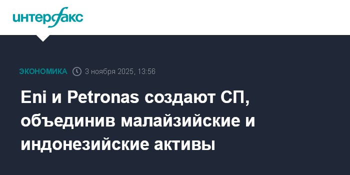 Москва. 3 ноября. INTERFAX.RU - Итальянская энергетическая компания Eni и малайзийская государственная Petronas достигли соглашения об образовании совместного предприятия, в которое войдет часть их активов в Малайзии и Индонезии.