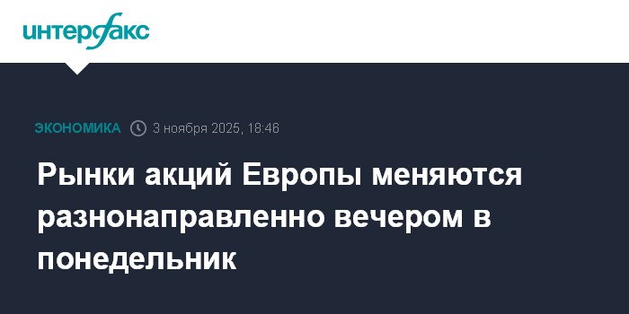 Москва. 3 ноября. INTERFAX.RU - Европейские фондовые индексы не показывают единой динамики вечером в понедельник, рынок оценивает корпоративные новости и экономические данные.