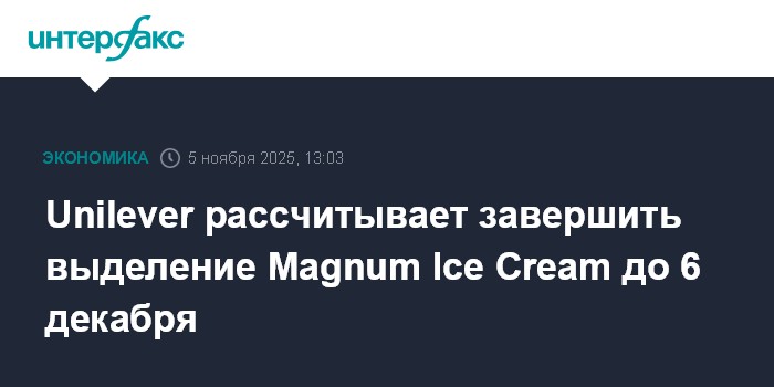Unilever рассчитывает завершить выделение Magnum Ice Cream до 6 декабря