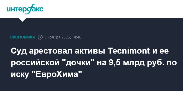 Суд арестовал активы Tecnimont и ее российской "дочки" на 9,5 млрд руб. по иску "ЕвроХима"