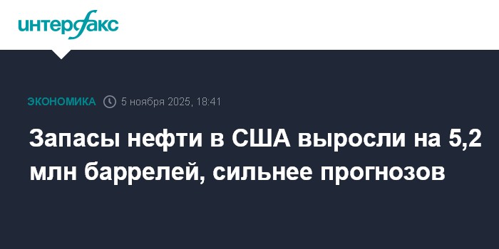 Запасы нефти в США выросли на 5,2 млн баррелей, сильнее прогнозов