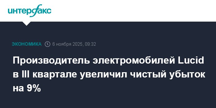 Производитель электромобилей Lucid в III квартале увеличил чистый убыток на 9%