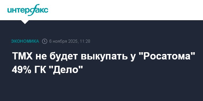 ТМХ не будет выкупать у "Росатома" 49% ГК "Дело"