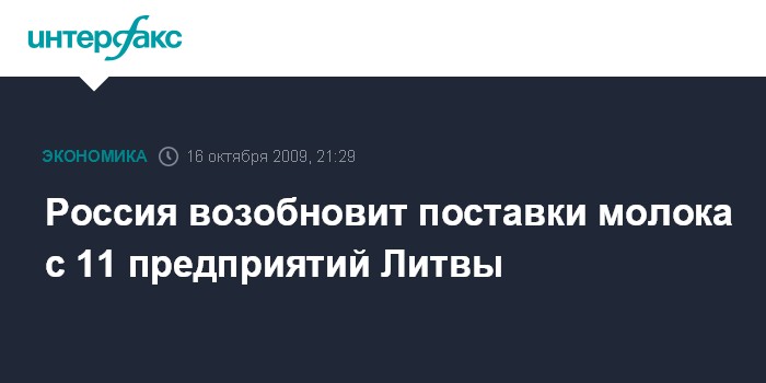 Россия возобновит поставки молока с 11 предприятий Литвы