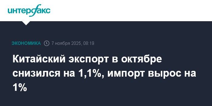 С начала 2025 года экспорт из Китая вырос на 5,3%, до $3,08 трлн, импорт уменьшился на 0,9%, до $2,12 трлн.