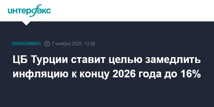 ЦБ Турции ставит целью замедлить инфляцию к концу 2026 года до 16%