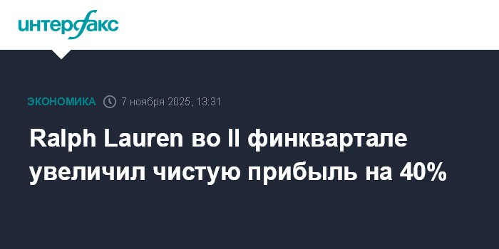 Москва. 7 ноября. INTERFAX.RU - Американский дом моды Ralph Lauren Corp. во втором квартале 2026 финансового года увеличил чистую прибыль на 40%, улучшил годовой прогноз.