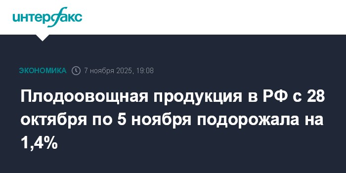 Плодоовощная продукция в РФ с 28 октября по 5 ноября подорожала на 1,4%