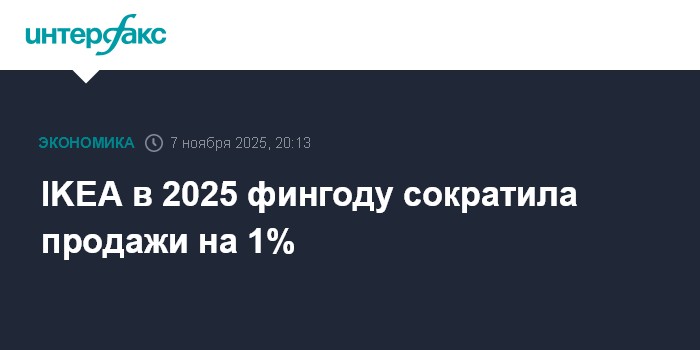 Москва. 7 ноября. INTERFAX.RU - Шведский ритейлер IKEA (Inter IKEA Group) по итогам 2025 финансового года, который завершился 31 августа, сократил розничные продажи до 44,6 млрд евро с 45,1 млрд евро, сообщается в отчетности компании.
