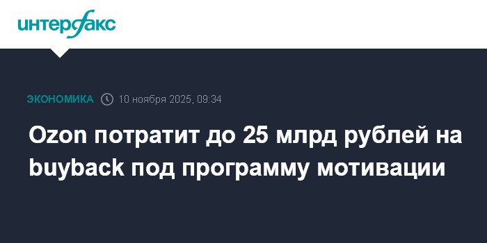 Москва. 10 ноября. INTERFAX.RU - Маркетплейс Ozon анонсировал проведение buyback с целью поддержания программы долгосрочной мотивации сотрудников.