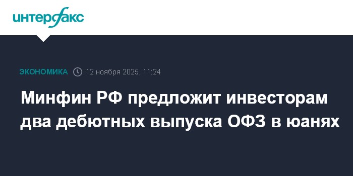 Минфин РФ предложит инвесторам два дебютных выпуска ОФЗ в юанях