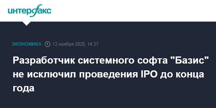 Москва. 12 ноября. INTERFAX.RU - Разработчик системного ПО "Базис" не исключает проведения IPO до конца 2025 года, но окончательное решение пока не принято, компания будет смотреть на ситуацию на рынке, сообщил журналистам в кулуарах форума "Цифровые решения" ее гендиректор Давид Мартиросов.