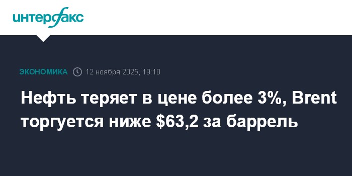 Нефть теряет в цене более 3%, Brent торгуется ниже $63,2 за баррель
