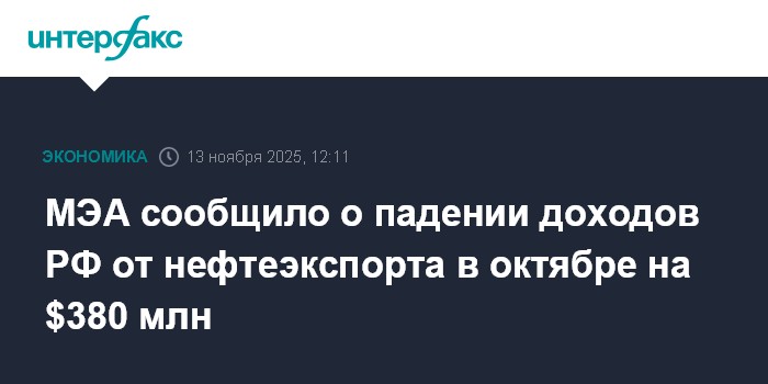 МЭА сообщило о падении доходов РФ от нефтеэкспорта в октябре на $380 млн