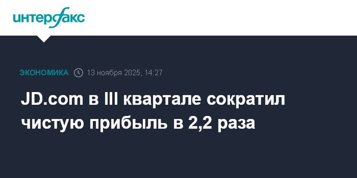 Москва. 13 ноября. INTERFAX.RU - Китайский интернет-ритейлер JD.com Inc. в третьем квартале 2025 года уменьшил чистую прибыль в 2,2 раза, при этом выручка выросла на 14,9% и превысила ожидания экспертов.