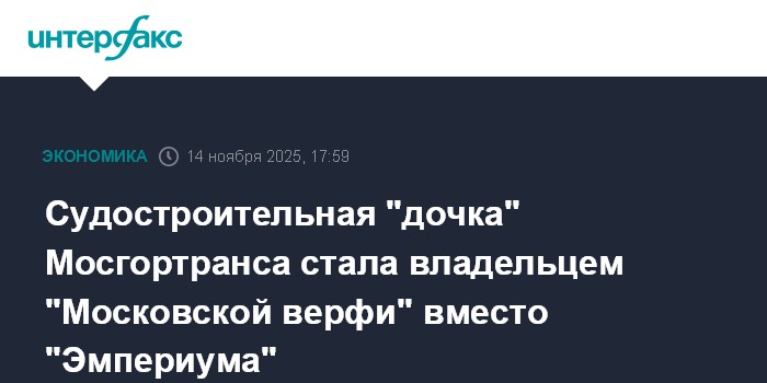 Москва. 14 ноября. INTERFAX.RU - ООО "Московская судостроительная компания" (МСК, "дочка" ГУП "Мосгортранс") 13 ноября 2025 года стало владельцем 100% ООО "Московская верфь", говорится в материалах ЕГРЮЛ.
