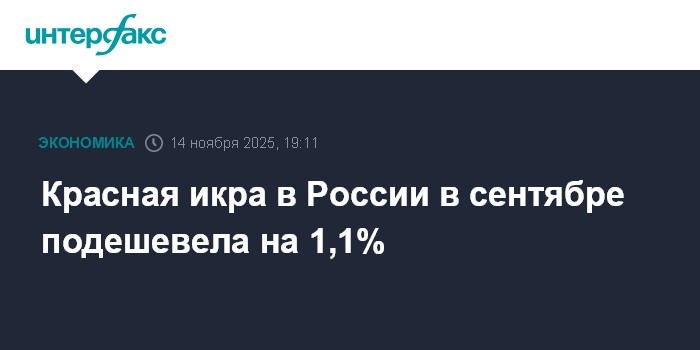 Москва. 14 ноября. INTERFAX.RU - В России в октябре цены на икру лососевых видов рыб по сравнению с сентябрем снизились на 1,1%, сообщил Росстат.