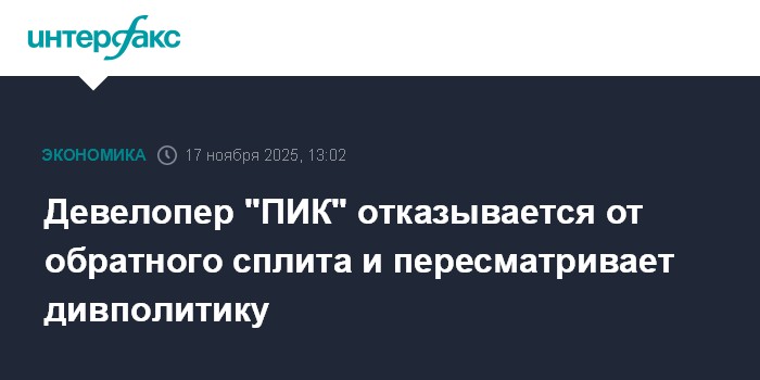 Девелопер "ПИК" отказывается от обратного сплита и пересматривает дивполитику