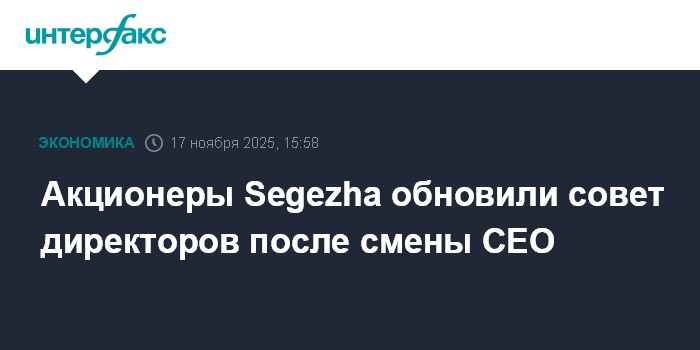 Москва. 17 ноября. INTERFAX.RU - Акционеры лесопромышленного холдинга Segezha Group одобрили все кандидатуры, выдвинутые ранее для избрания в совет директоров компании, говорится в существенном факте эмитента. Внеочередное собрание акционеров по этому вопросу состоялось 13 ноября.