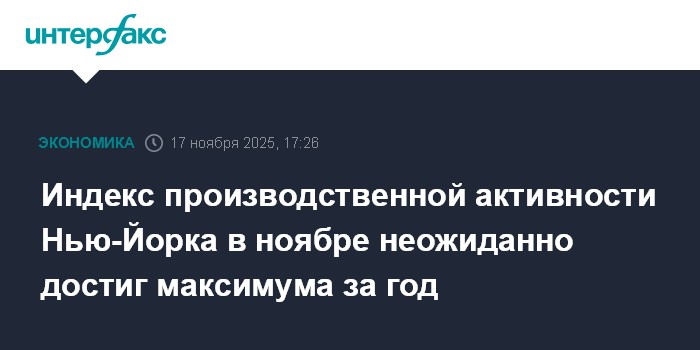 Индекс производственной активности Нью-Йорка в ноябре неожиданно достиг максимума за год
