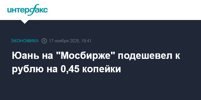Юань на "Мосбирже" подешевел к рублю на 0,45 копейки