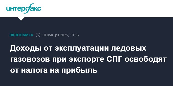 Москва. 18 ноября. INTERFAX.RU - Госдума рассмотрит правительственную поправку к Налоговому кодексу, которая предлагает полностью освободить от налогообложения прибыль российских судовладельцев от экспорта СПГ до 31 декабря 2031 года.