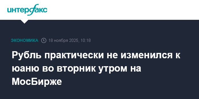Москва. 18 ноября. INTERFAX.RU - Китайский юань лишь слегка подрос на Московской бирже утром во вторник; рубль относительно стабилен в начале биржевых торгов 18 ноября на фоне сформировавшегося баланса между спросом и предложением.