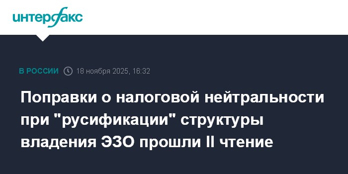 Поправки о налоговой нейтральности при "русификации" структуры владения ЭЗО прошли II чтение