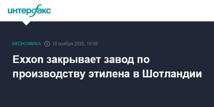 Москва. 18 ноября. INTERFAX.RU - Американская энергетическая компания ExxonMobil объявила о планах закрыть завод по производству этилена в шотландском графстве Файф в феврале 2026 года.