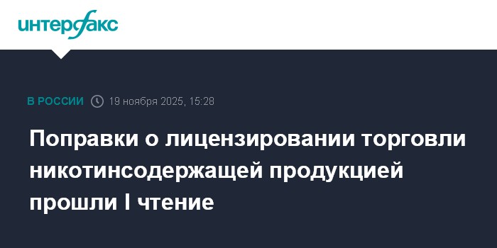 Поправки о лицензировании торговли никотинсодержащей продукцией прошли I чтение