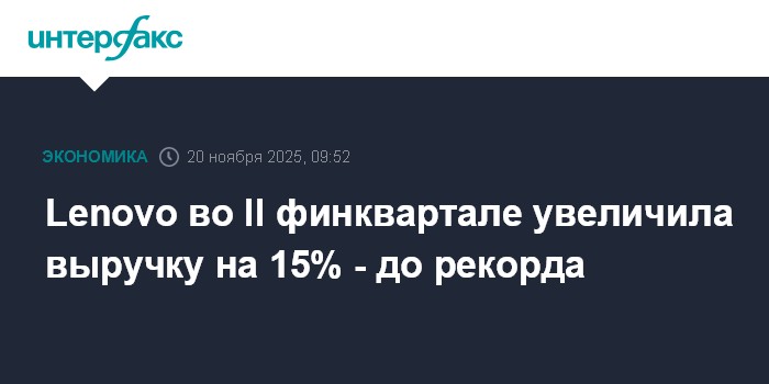 Москва. 20 ноября. INTERFAX.RU - Китайская Lenovo Group Ltd., крупнейший мировой производитель персональных компьютеров, во втором квартале 2025/26 финансового года получила рекордную выручку, сообщается в отчетности.