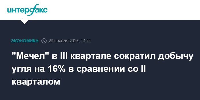Москва. 20 ноября. INTERFAX.RU - "Мечел" в III квартале cократил добычу угля на 16% к предыдущему кварталу, до 1,3 млн тонн, сообщила компания.