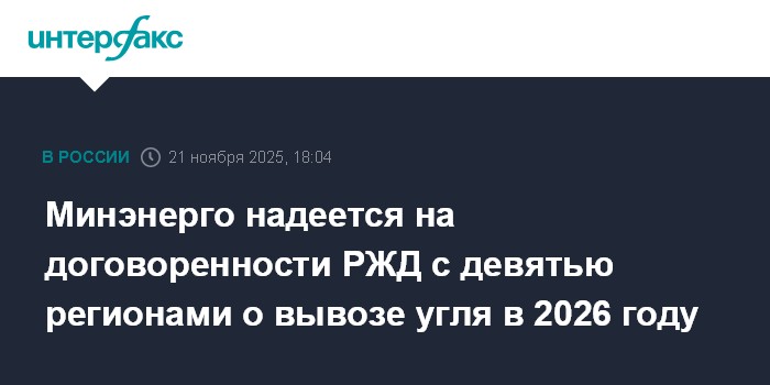 Минэнерго надеется на договоренности РЖД с девятью регионами о вывозе угля в 2026 году