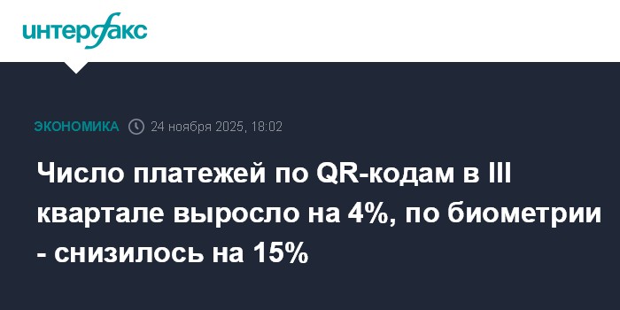 Число платежей по QR-кодам в III квартале выросло на 4%, по биометрии - снизилось на 15%