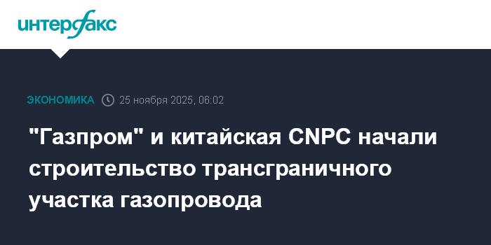 Москва. 25 ноября. INTERFAX.RU - "Газпром" и китайская госкомпания CNPC в соответствии с подписанным в 2023 году межправительственным соглашением по "дальневосточному" маршруту, приступили к совместному проектированию и строительству трансграничного участка газопровода через реку Уссури, сообщил вице-премьер РФ Александр Новак на седьмом российско-китайском энергетическом бизнес-форуме.