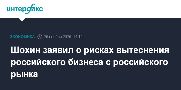 Шохин заявил о рисках вытеснения российского бизнеса с российского рынка