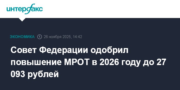 Совет Федерации одобрил повышение МРОТ в 2026 году до 27 093 рублей