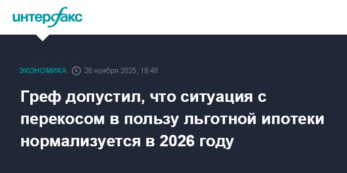 Греф допустил, что ситуация с перекосом в пользу льготной ипотеки нормализуется в 2026 году