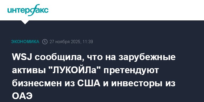WSJ сообщила, что на зарубежные активы "ЛУКОЙЛа" претендуют бизнесмен из США и инвесторы из ОАЭ