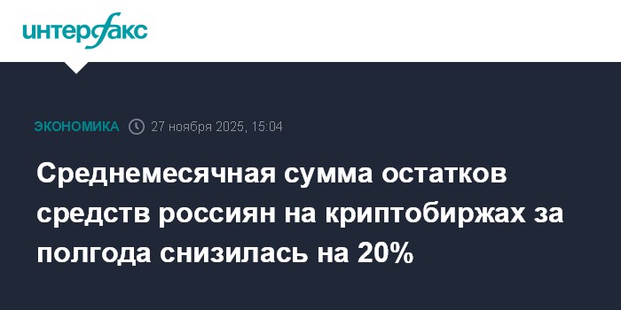Среднемесячная сумма остатков средств россиян на криптобиржах за полгода снизилась на 20%