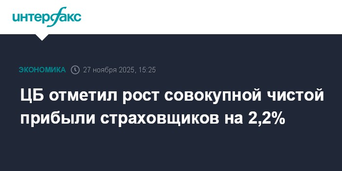 ЦБ отметил рост совокупной чистой прибыли страховщиков на 2,2%