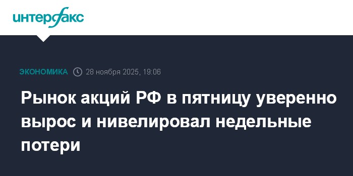 Рынок акций РФ в пятницу уверенно вырос и нивелировал недельные потери