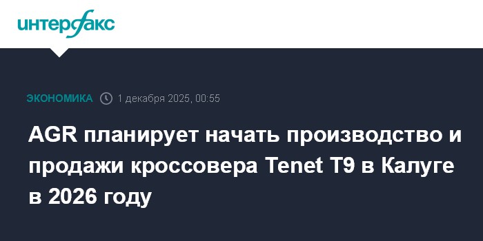Москва. 1 декабря. INTERFAX.RU - Запуск в производство четвертой модели кроссоверов Tenet - Tenet T9 - планируется на калужском автозаводе группы AGR (бывшая площадка Volkswagen) в 2026 году, сообщил журналистам гендиректор "АГР Холдинга" Андрей Карагин.